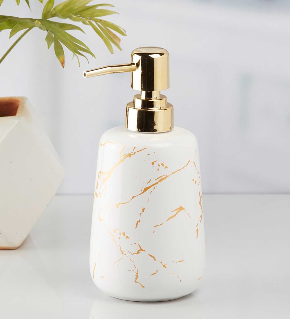 Kookee is a leading brand in Soap Dispenser for Bathroom that are exquisite and beautiful, decorate the bathroom and kitchen with good things. Introducing our exquisite Ceramic Soap Dispenser Set for bathroom and kitchen. Crafted with precision, this elegant marble soap dispenser adds a touch of luxury to your space. Our high-quality liquid soap dispenser bottles are designed for easy handwashing, providing convenience and style. Elevate your bathroom with this sophisticated soap dispenser set, combining functionality and aesthetics seamlessly. Perfect for bathroom and kitchen use, this set is a must-have addition to your home decor. COLOR: The genuine color of the item may be slightly different from the pictures shown due to many factors such as the brightness of the computer screen or the lighting levels. SIZE: The dispenser set size is measured by hand, so please allow a slight deviation within 2cm-3cm. We offer the best packaging in the industry to ensure a safe delivery to you. Package contents: 1 Soap Dispenser