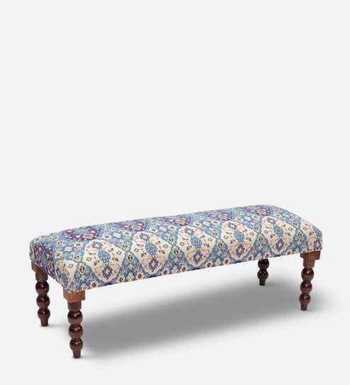 An Eye Catching Look Handcrafted Rug Upholstered Wooden Bench for Your Living Room, Entryway. This Wooden Bench Made by High Quality Wood With Handmade Rug Fabric, Which Developed By Our Local Artisans.
