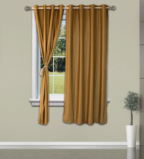 Welhome Golden Polyester 48 x 60 Inch Solid Window Curtain