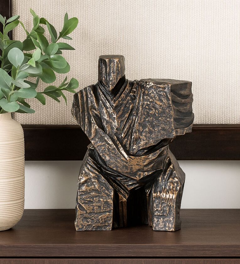 Modern Stone Finish Martial Art Sculpture Figurine, (Gold, 26.4cm)