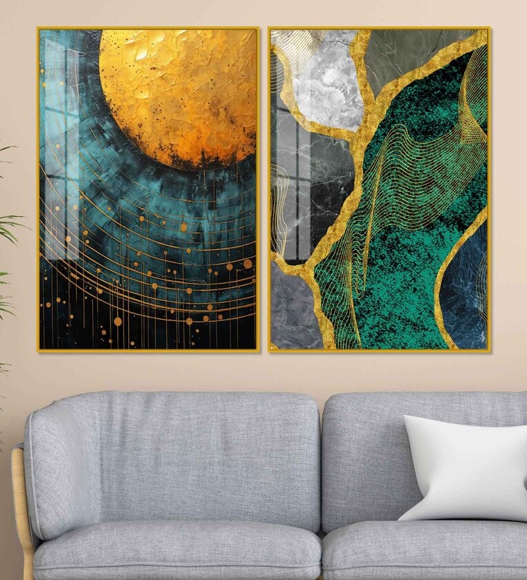 Modern Turquoise Artistic Art Acrylic Framed Art Panel (Set Of 2)