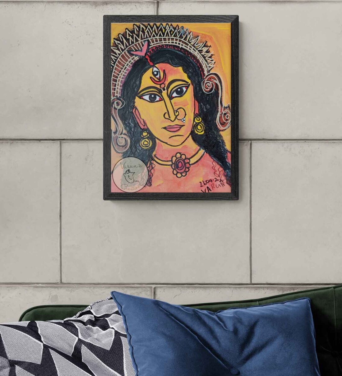 Add meaning to your home & workspace with Atypical Art. "Modern Woman Durga" depicts a contemporary reinterpretation of the Hindu goddess, embodying strength, resilience, and empowerment. With acrylic on canvas, vibrant colors dance amidst bold strokes, blending tradition with modernity. Durga's serene yet fierce expression captures the essence of feminine power in today's world, inspiring awe and admiration.What you will receive: - Original Artwork without frame - Certificate of Appreciation for empowering an Artist with Disability (shared over email) Expected delivery time: 7-10 business days