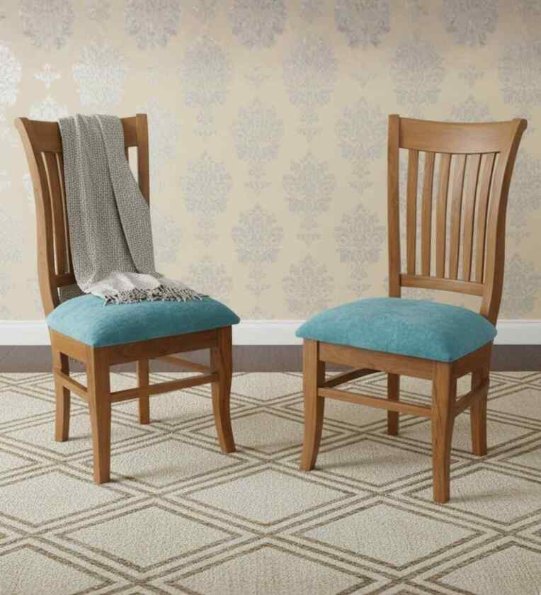 This wooden dining chair features a timeless slatted back design that combines elegance with strength. Made from solid teakwood, it ensures long-lasting durability and firm support. The cushioned seat offers comfort for daily use, while the smooth polish highlights the rich natural tone of the wood. Its curved backrest provides ergonomic support for relaxed seating during meals. Ideal for dining rooms, cafés, or formal spaces, this chair adds a refined and classic look to any setting.