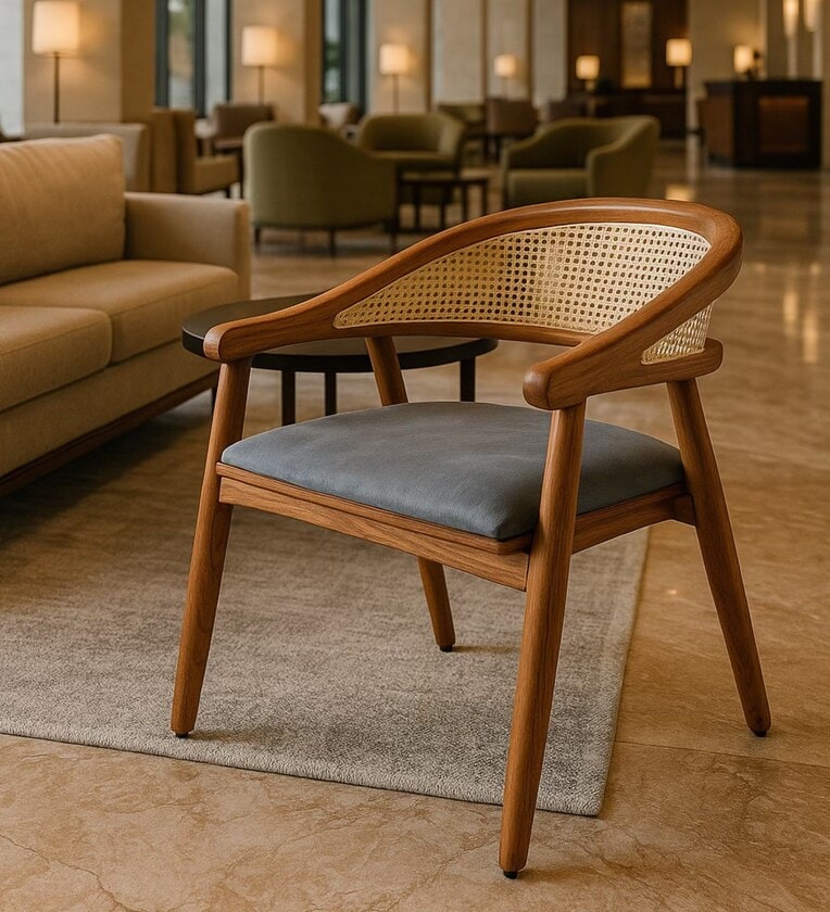 Transform your living space with Habere India s stunning collection of chairs designed to suit every need and style. Our diverse range includes elegant arm chair for your living room furniture and cozy chairs for living room, ensuring you have the perfect seating for every occasion. Whether you're looking for individual pieces like a modern accent chair or practical chairs for home, our collection has something for everyone. From stylish wooden chairs for living room to sleek contemporary designs, we offer a variety of options to complement your decor. Explore our outdoor options, including chairs for living room that transition seamlessly to outdoor spaces or garden chairs outdoor, to create a flow between your indoor and outdoor areas. Key Features: Stylish Design: Our collection includes a wide range of designs, from sleek modern accent chairs to elegant arm chairs and wooden chairs for living room, ensuring there s something to complement every style of decor. Versatile Use: Whether you're looking for a chair for living room, a chair for study, a dining table chair, or a chair for cafe, our versatile seating options fit any space and purpose, making it easy to create the perfect environment in your home or business. Quality Materials: Crafted from high-quality wood, each chair is designed to offer lasting comfort, durability, and timeless style, ensuring your furniture investment is built to last. Maintenance & Care Instructions: To keep your chairs looking beautiful, clean with a damp cloth. For cushioned seats and backs, spot clean with a fabric cleaner. Avoid using harsh chemicals or abrasive materials to preserve the quality of the finish. Package Content & Dimensions: Package includes one chair with the following dimensions: Overall (CM): 57w x 67d x 61h. Seat width: 51, Seat depth: 44, Seat height: 30, Back height: 42. Charming Outdoor Furniture: Enhance your outdoor space with garden chairs outdoor and outdoor chairs for balcony, designed for relaxation and style while maintaining a seamless flow between your indoor and outdoor areas.