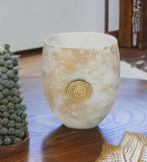 Monolithic Maze White & Gold Metal & Glass Table Vase