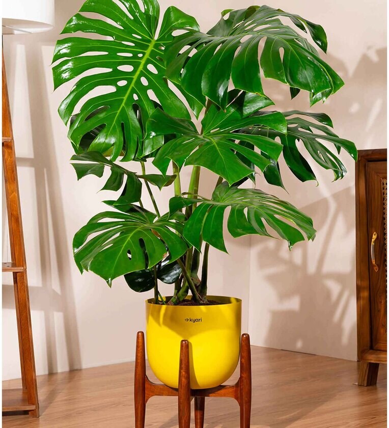1 Monstera Deliciosa live plant with 10 inch Arbor self watering metal planter