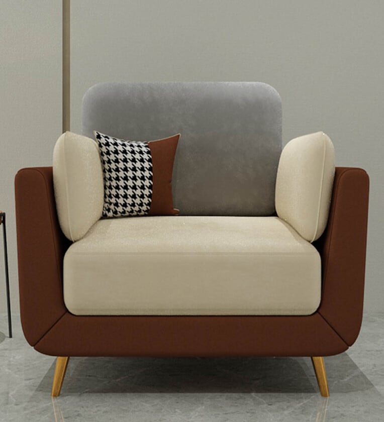 Montez Velvet 1 Seater Sofa in Brown & Beige Colour