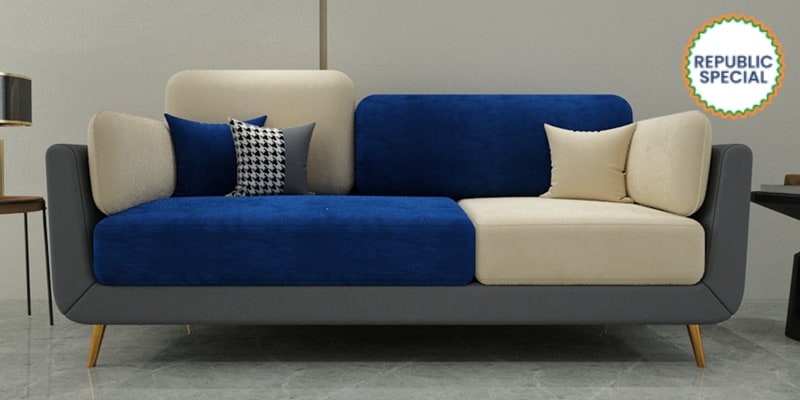 Montez Velvet 3 Seater Sofa in Blue & Beige Colour