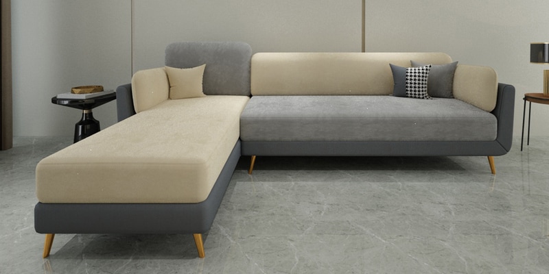 Montez Velvet RHS Sectional Sofa (3 + Lounger) in Grey & Beige Colour