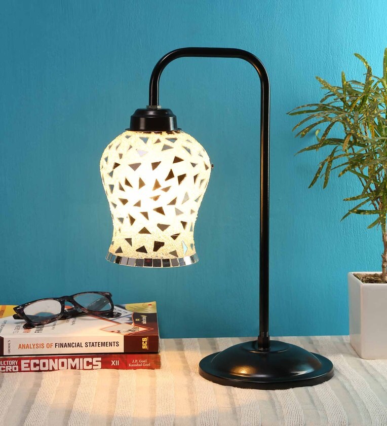 Mosiac Multicolour Glass Shade Study Lamp with Black Base