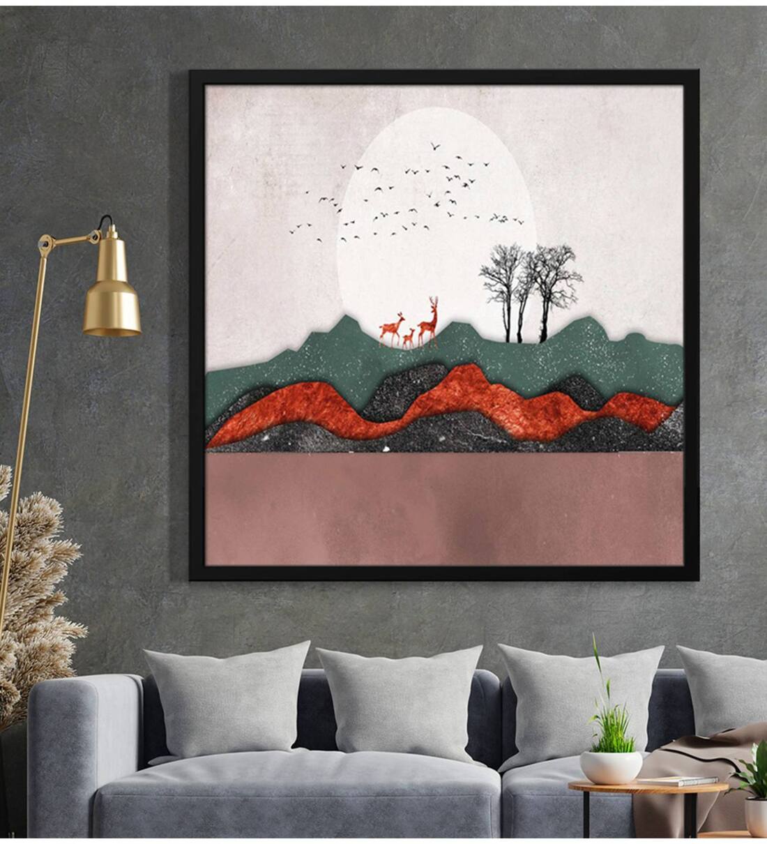 Frame: The Canvas painting print is strected on wooden frame and its framed on floating frame or box frame and ready to hang on the wall painting using the clips provided in the package.