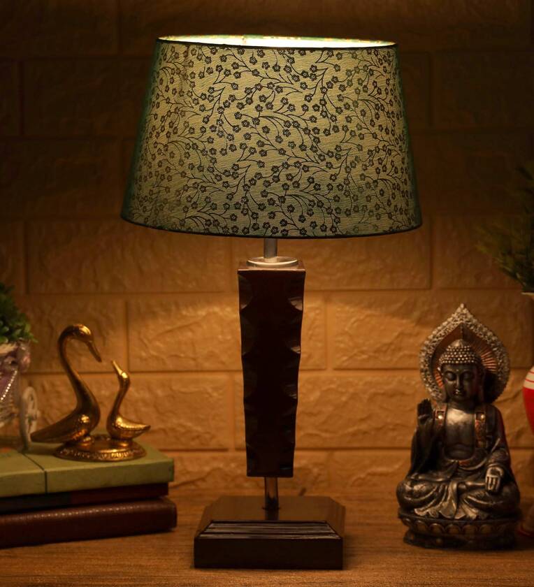 Mountwill Green & Gold Fabric Shade Night Lamp With Wood Base