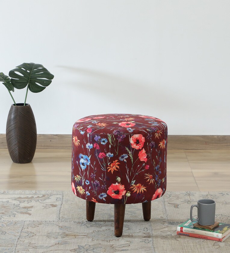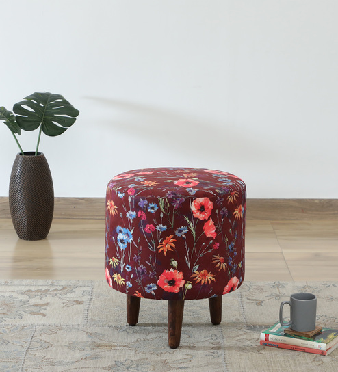 Mozart Fabric Seating Stool In Provincial Teak Finish