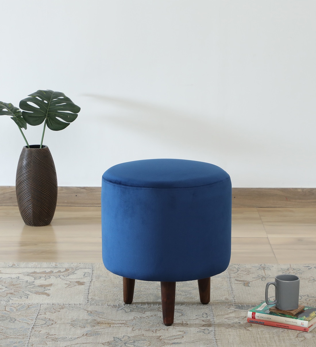 Mozart Fabric Seating Stool In Provincial Teak Finish