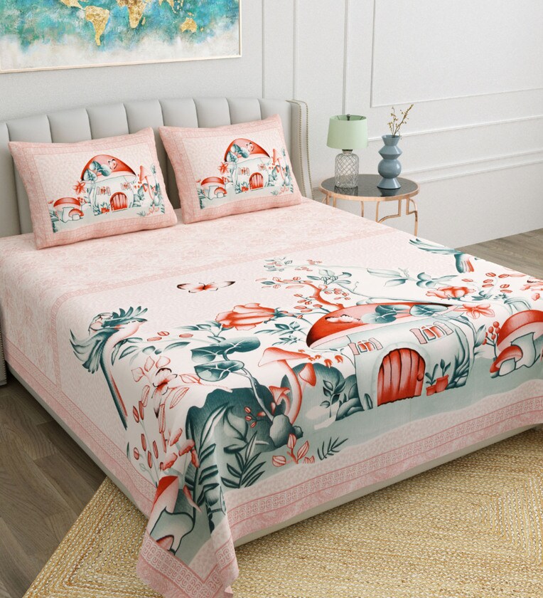 Multi Traditional 180 TC Cotton Printed Bedsheet With Two Pillow Covers For Queen Bed (Jaipuri Printed ,Multi ,153 GSM)