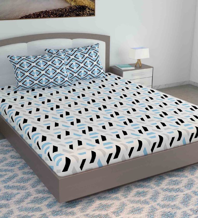Multicolor Abstract 144 TC Cotton King Sized Bed Sheets with 2 Pillow Covers