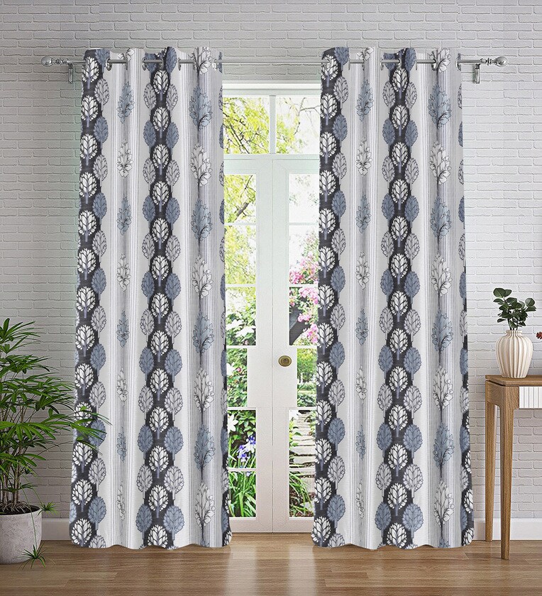 Multicolor Abstract Polyester 9ft Semisheer Eyelet (Set Of 2)