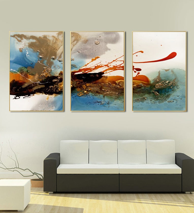 Multicolor Canvas Framed Abstract Art Panel Set of 3