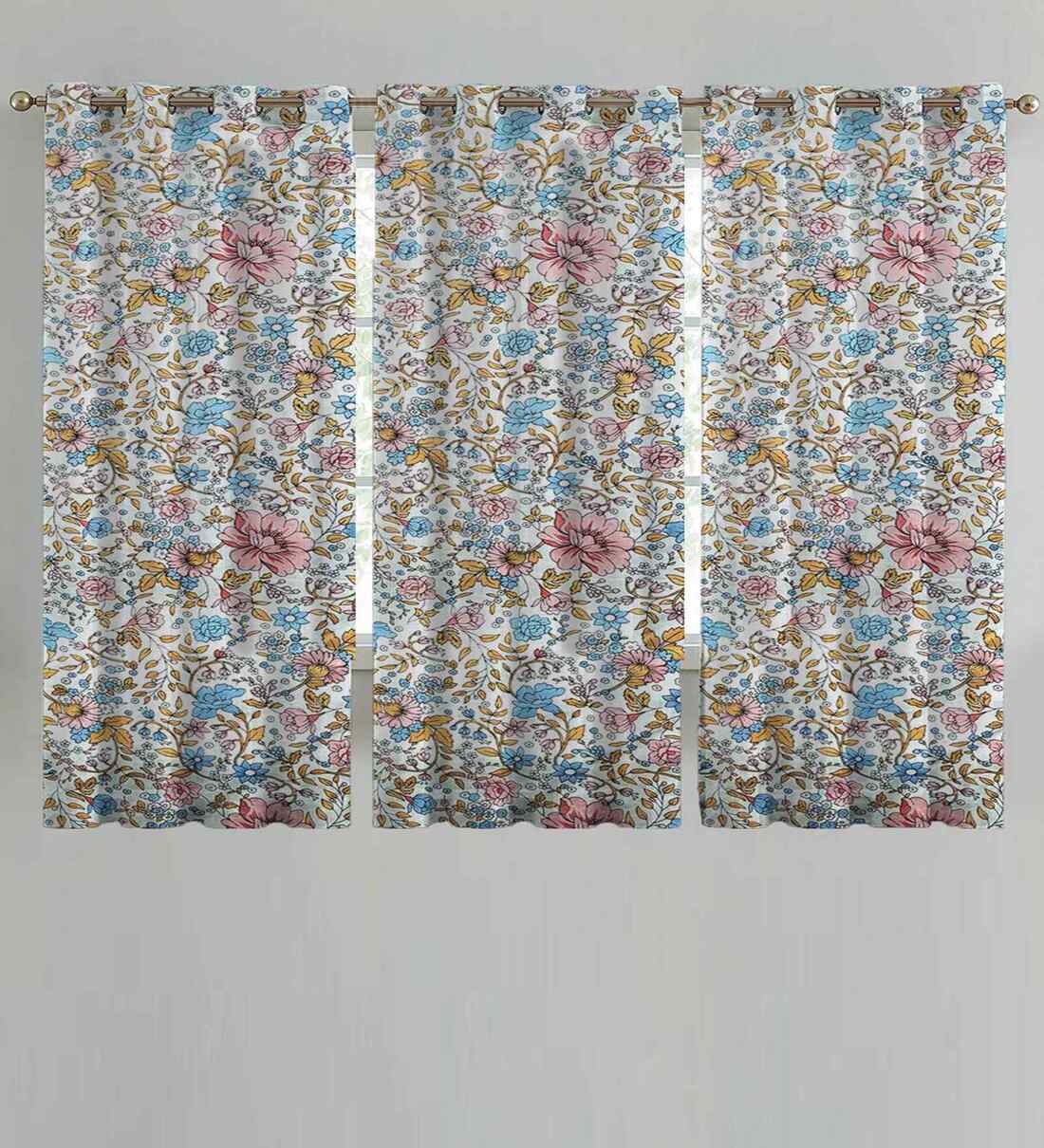 Multicolor Cotton Floral 5ft Window Curtains (3 Pcs)