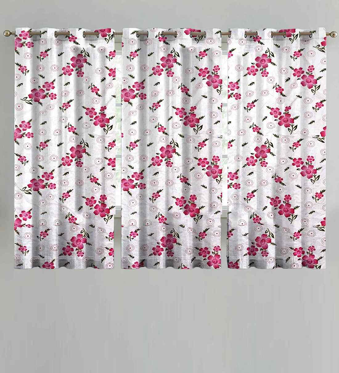 Multicolor Cotton Floral 5ft Window Curtains (3 Pcs)