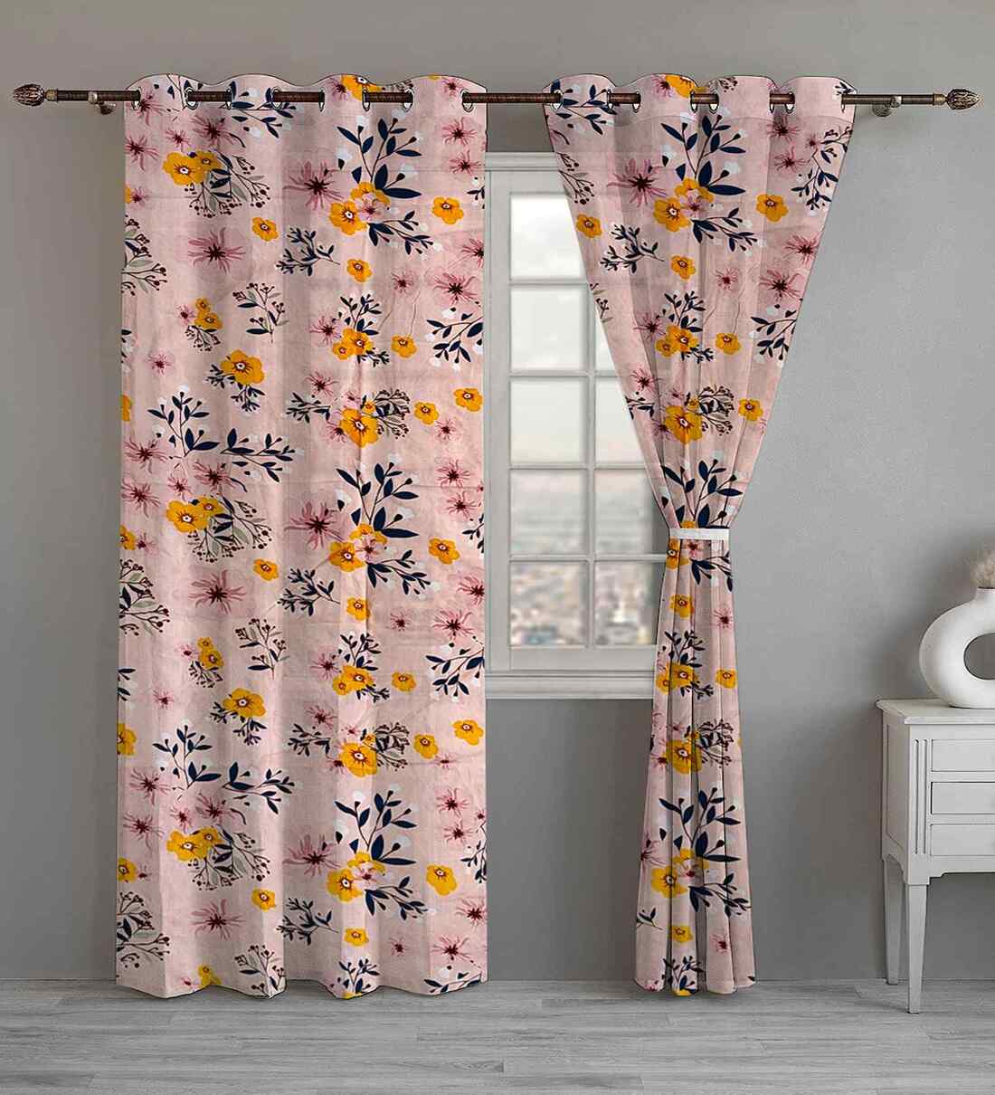 Multicolor Cotton Floral 7ft Eyelet Door Curtains (2 Pcs)