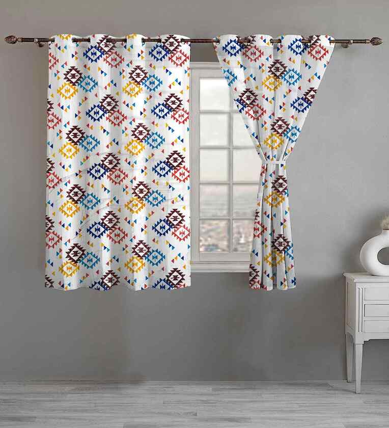 Multicolor Cotton Geometric 5ft Window Curtains (2 Pcs)