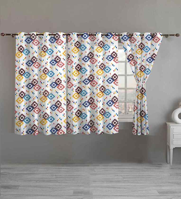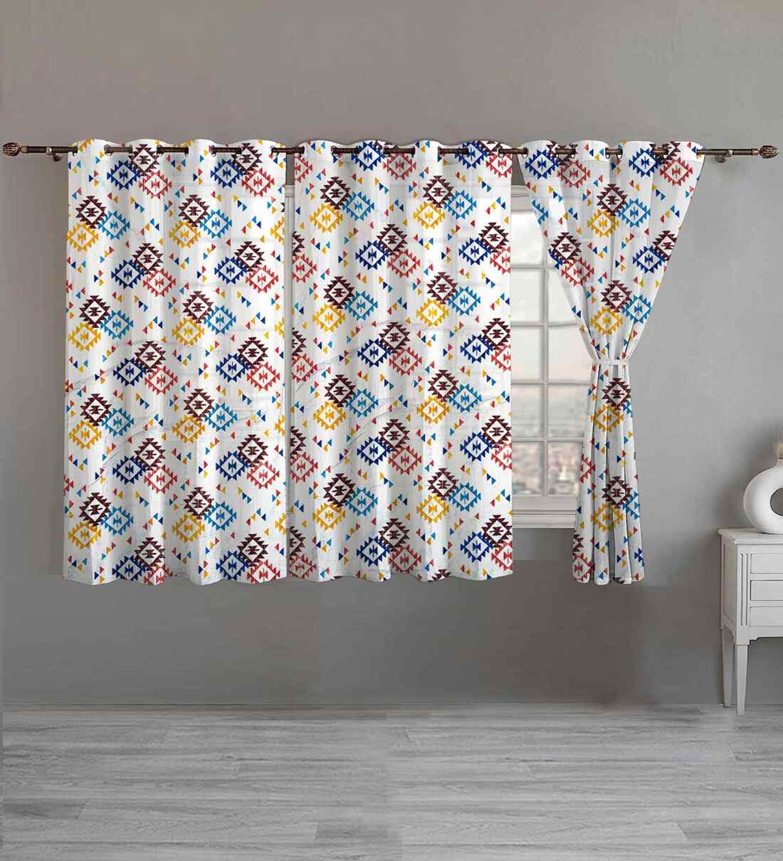 Multicolor Cotton Geometric 5ft Window Curtains (3 Pcs)