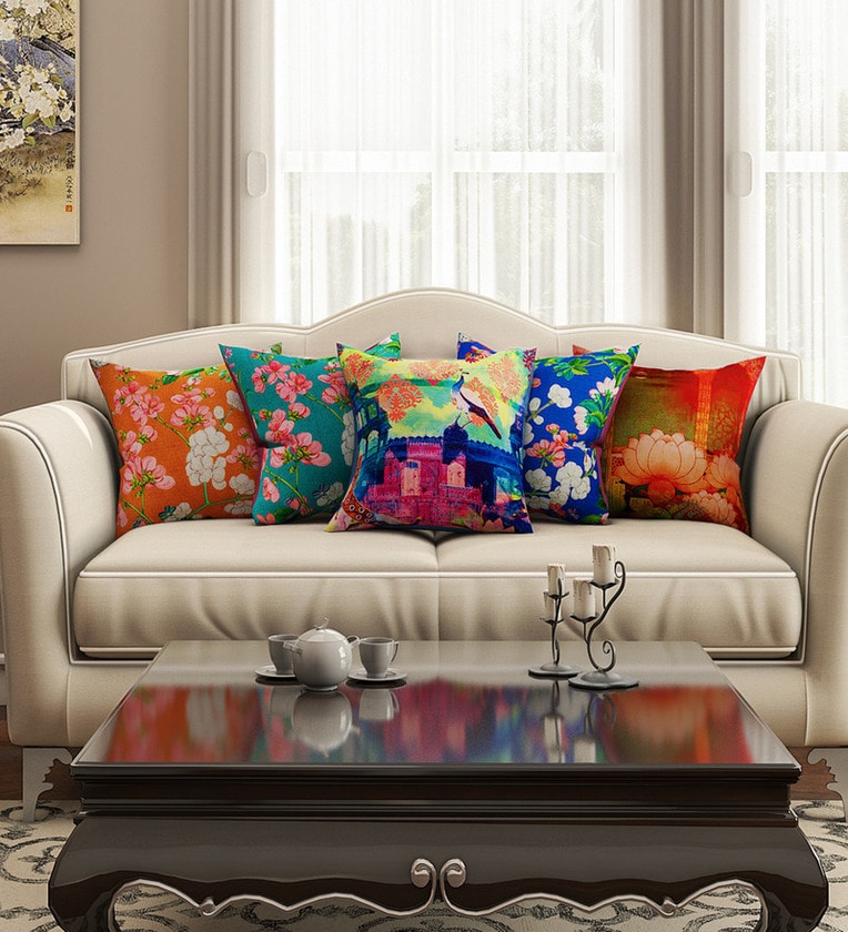 Multicolor Floral Cotton 16 x 16 Inches Cushion Covers (Set of 5)