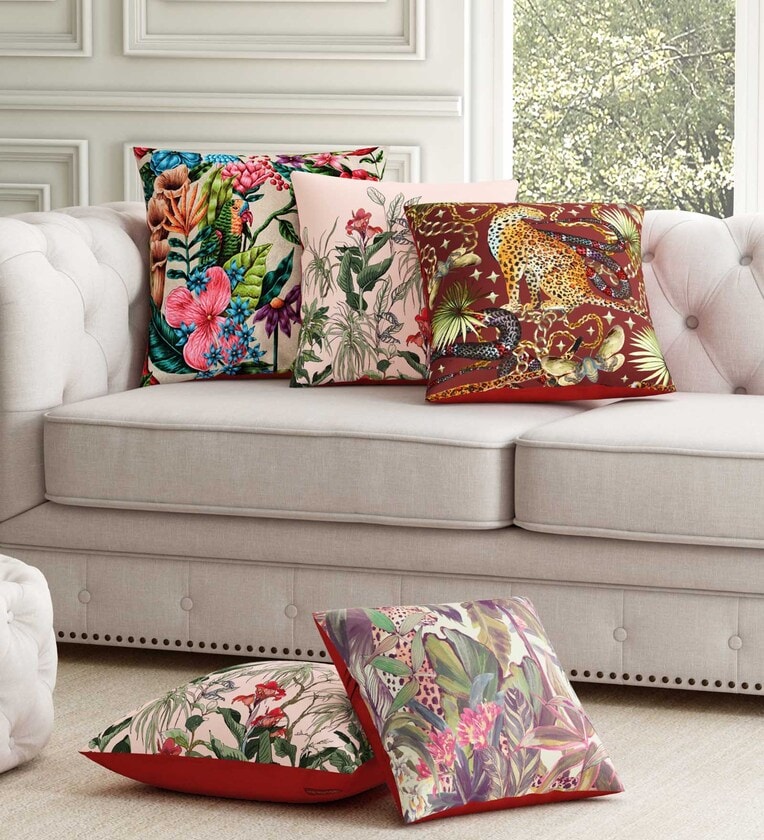 Multicolor Floral PolyCotton 16 x 16 Inches Cushion Cover (Set of 5)