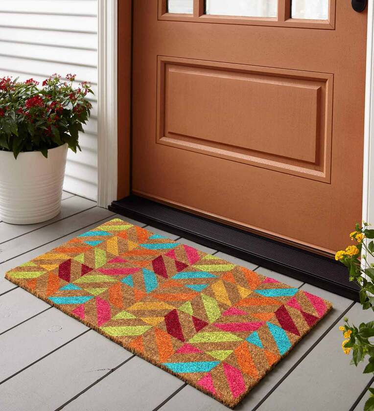 Multicolor Geometric Coir 30 x 18 Inches Anti Skid Door Mat