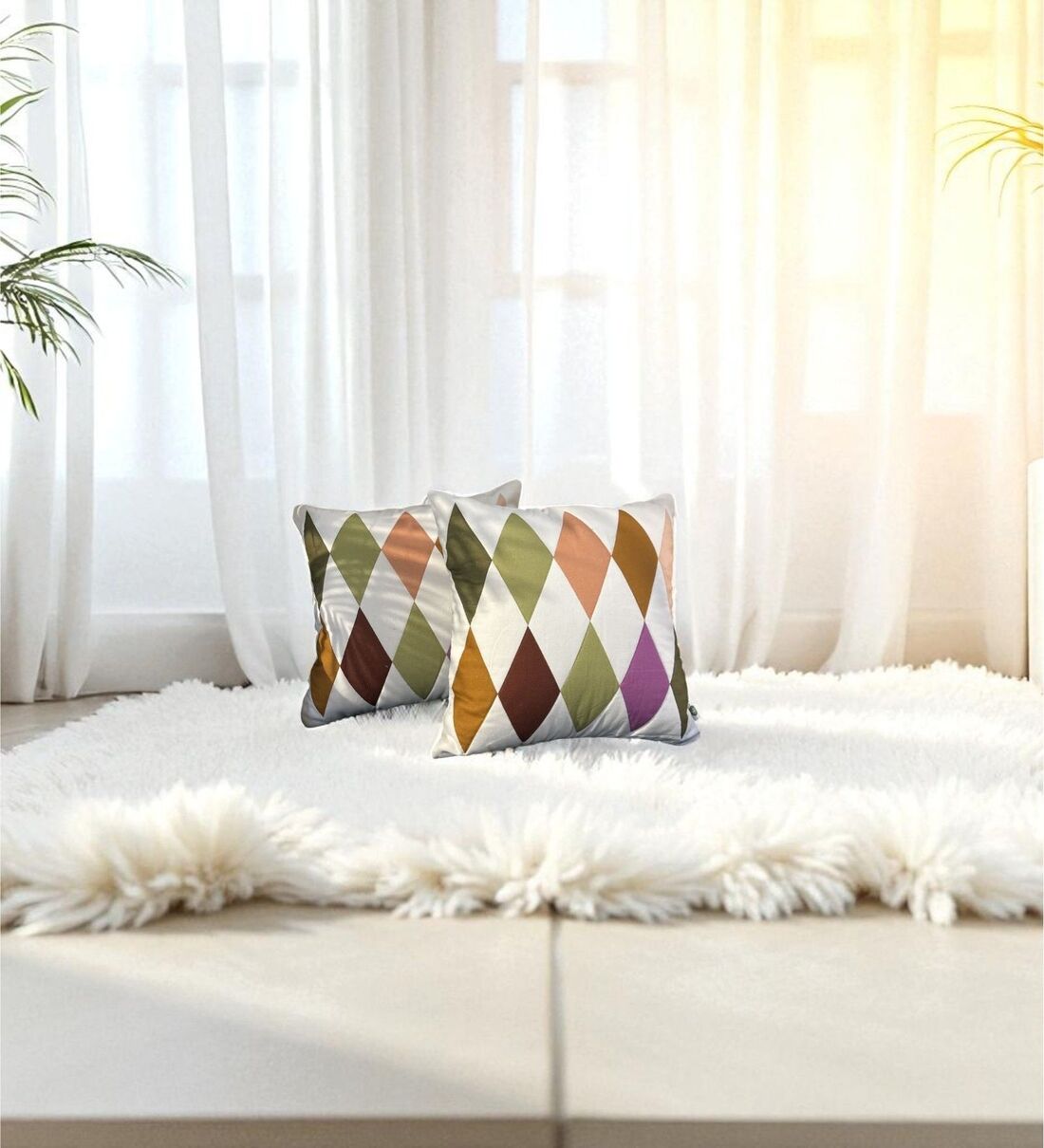 Add a joyful pop to your d cor with the Festive Diamonds Patchwork Cushion Cover by Lushlyf. Designed in a harlequin-style diamond pattern, this cover combines bold jewel-inspired tones with the smooth comfort of cotton. A blend of tradition and fun, it s the perfect accent for celebratory gatherings or eclectic living spaces.