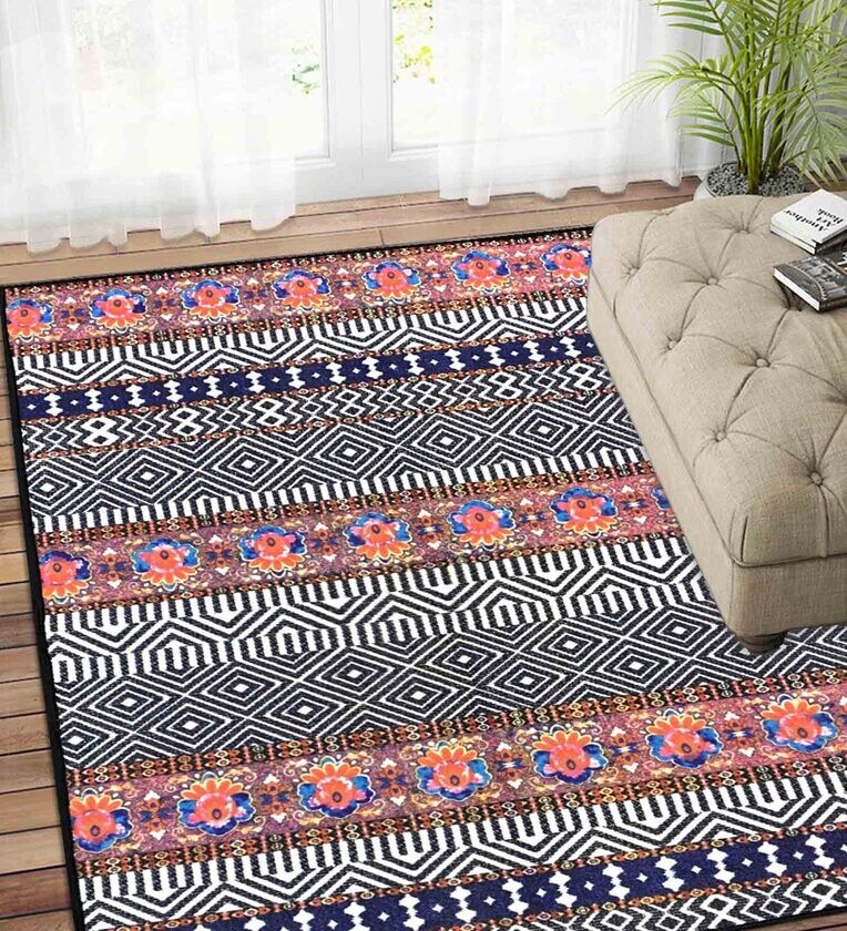 Multicolor Persian Polyester 3 ft x 5 ft Machine Made Carpet