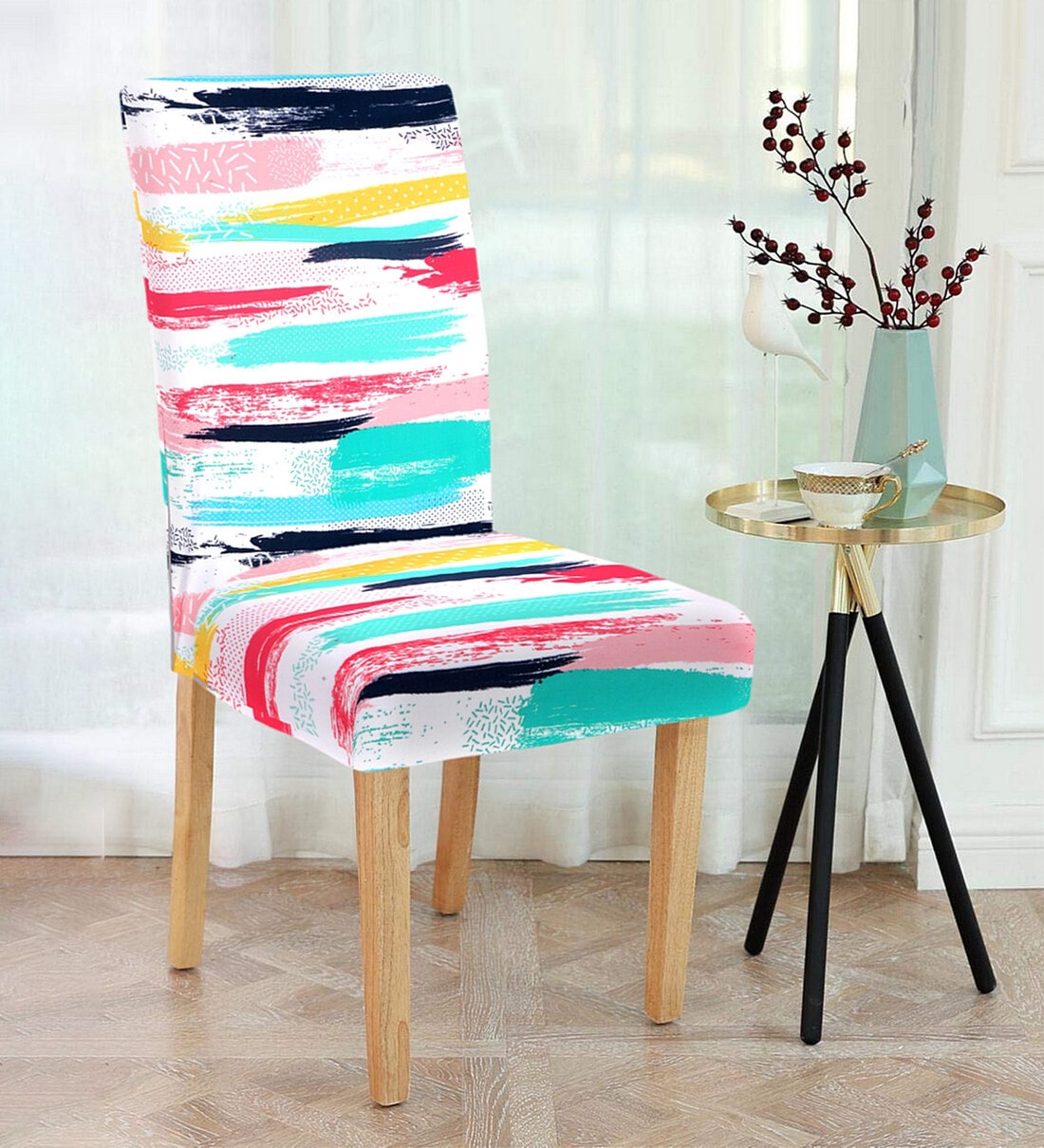Multicolor Printed Polyester 15 x 19 Inches Stretchable Chair Covers (Set of 4)