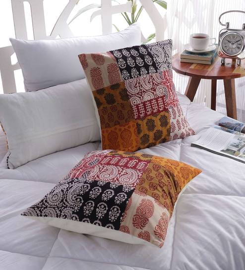 Multicolor Traditional Cotton 16 x 16 Inches Cushion Covers (Set of 2)