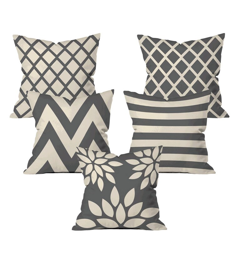 Grey Abstract Cotton Canvas 16 x 16 Inches Cushion Covers (Set of 5)