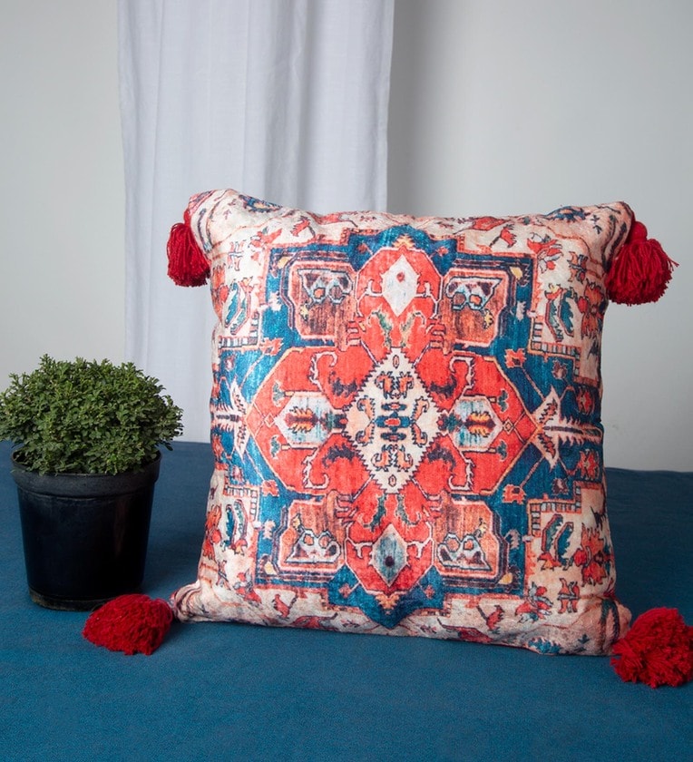 Multicolor Traditional Velvet 16 x 16 Inches Cushion Cover