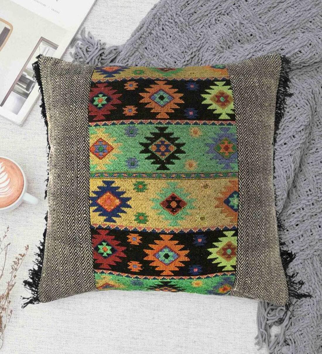 Multicolor Traditional Woven Cotton 20 x 20 Inches Cushion Cover