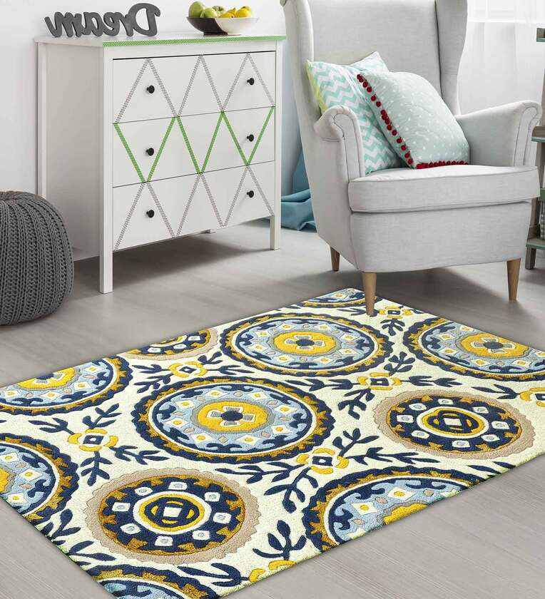 Buy Multicolor Wool And Art Silk Floral 5 x 7 Feet Hand Tufted Carpet
