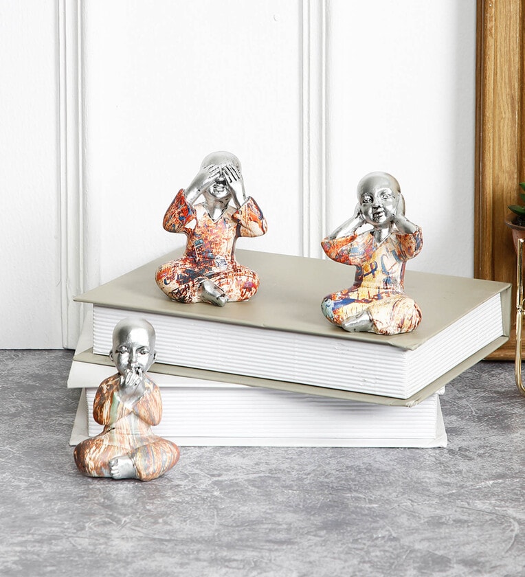 Silver Faces Multicolour Polyresin (Set of 2) Buddha