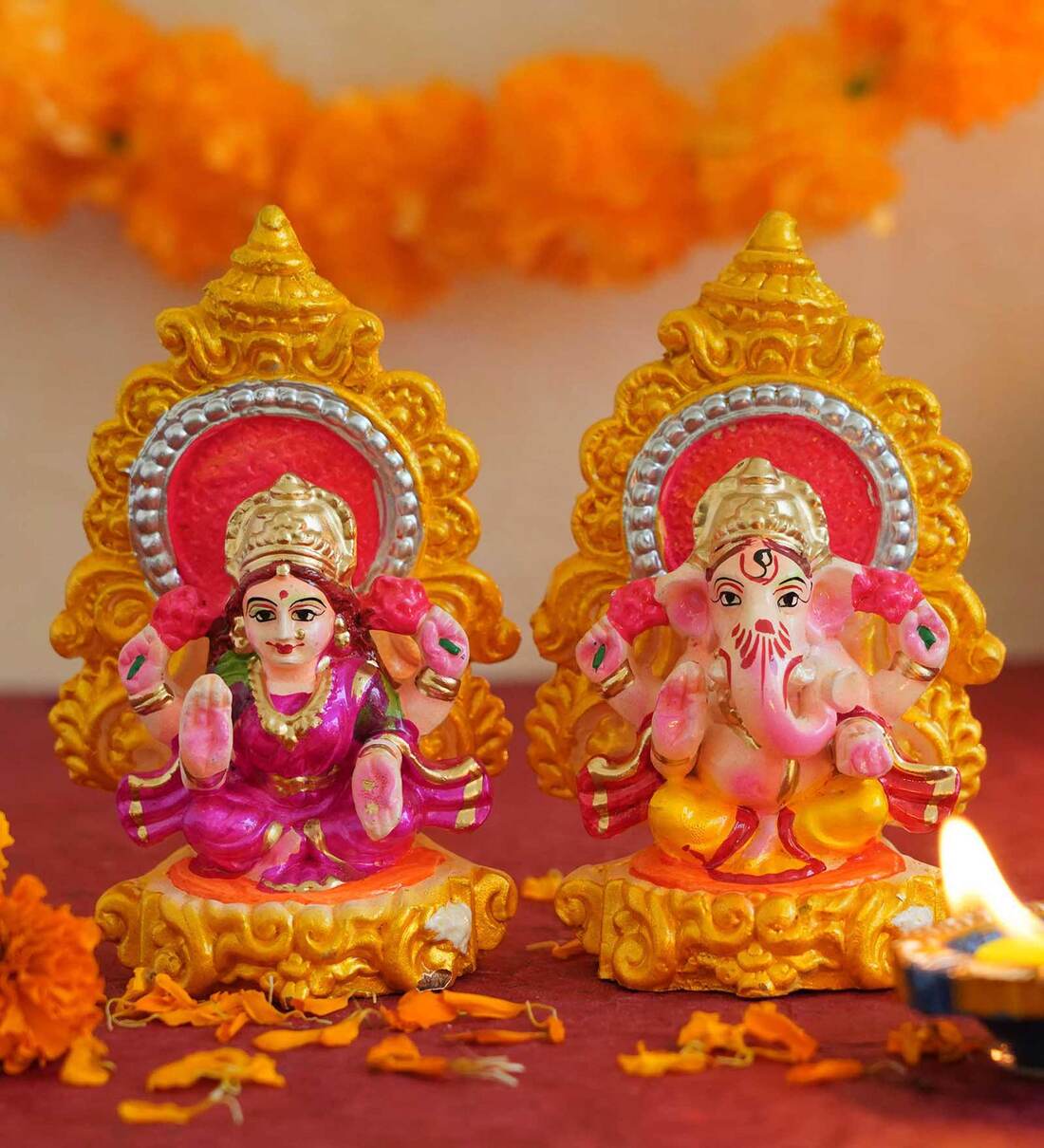 Multicolour Clay 4.5 Inches Laxmi Ganesha Idol Statue