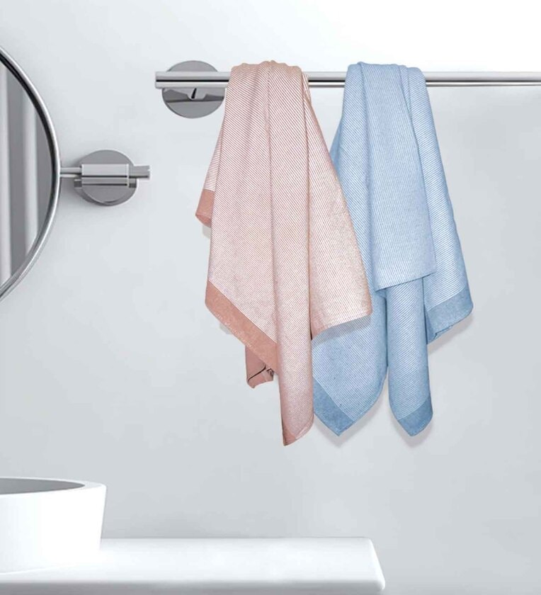 Multicolour Cotton Striped 220 GSM Bath Towels 2 Pc