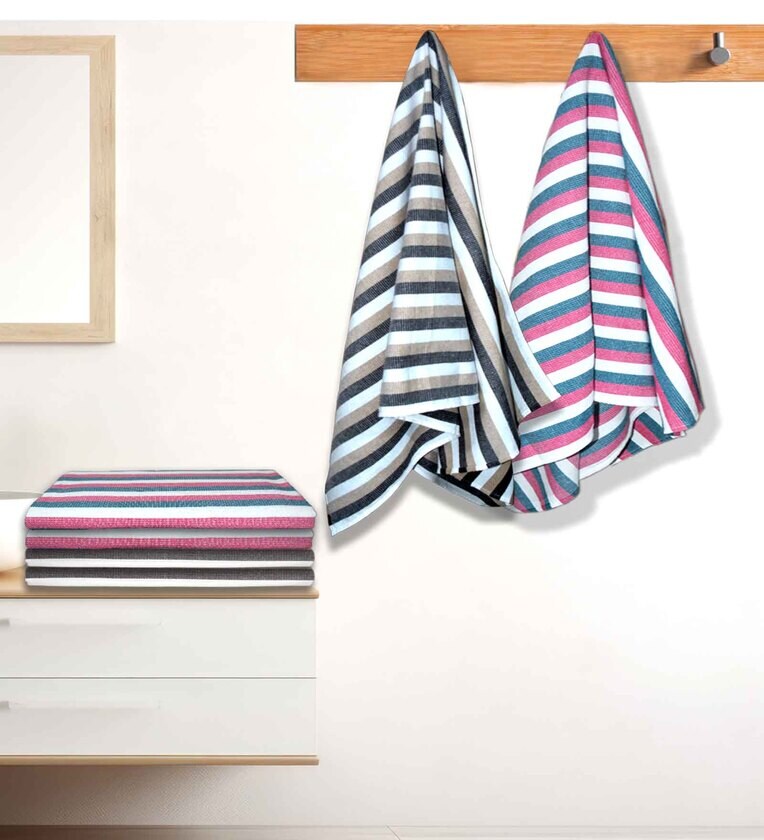 Multicolour Cotton Striped 220 GSM Bath Towels 6 Pc