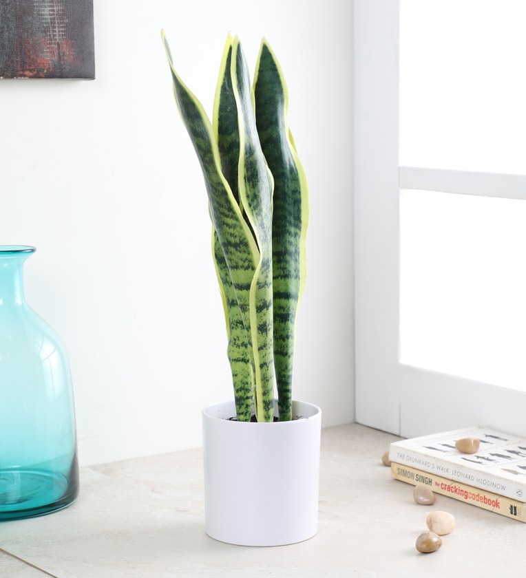 Multicolour Fabric Artificial Sansevieria Snake Plant with Pot