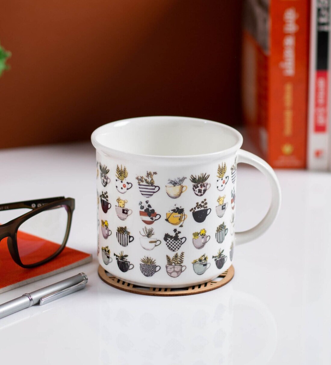 1 Milk Mug Dimension- 12*9.5*8.5 cm Capacity- 490 ml Material - Fine Ceramic Microwave & Dishwasher Safe Always wash after use and store in a dry place.