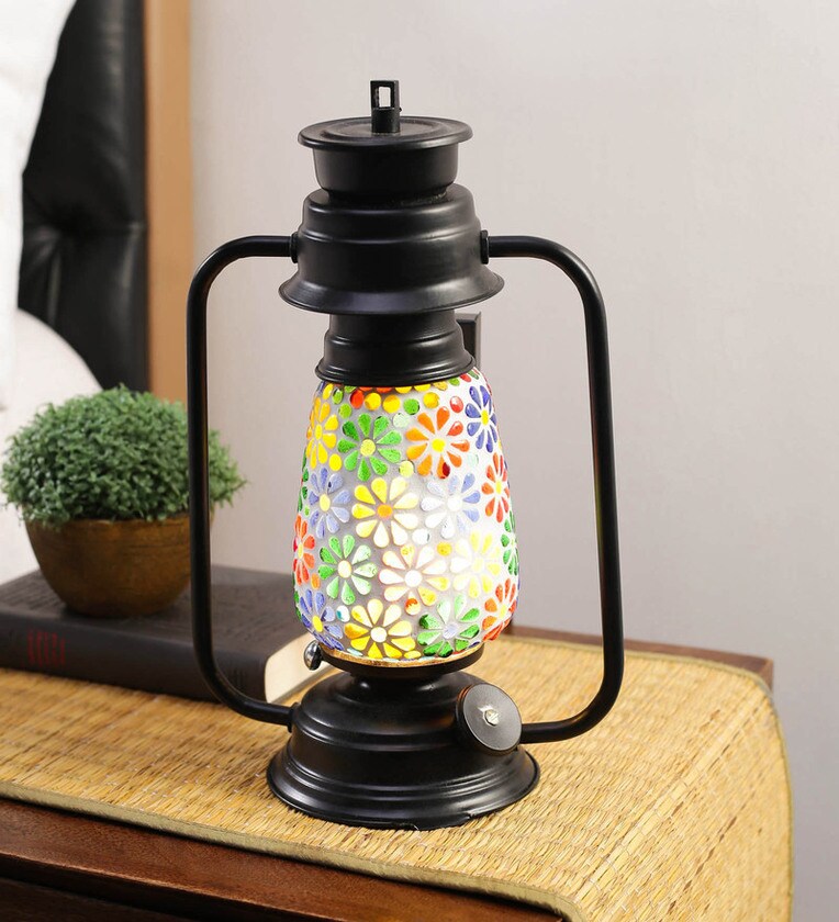Modern Multicolour Glass Shade Table Lamp With Metal Base