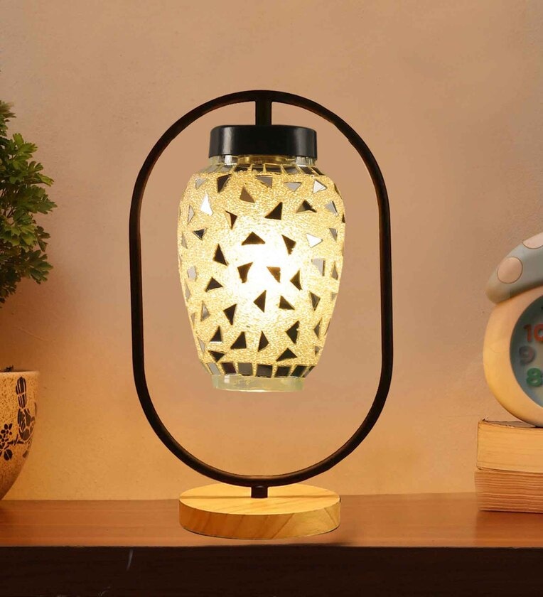Multicolour Glass Table Lamp With Wood Base