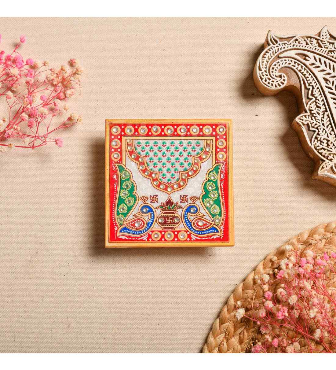 Color : Multicolor, Material : Marble Chowki Care Instruction : Clean it with a dry cloth. Package Content : 1 Marble Chowki
