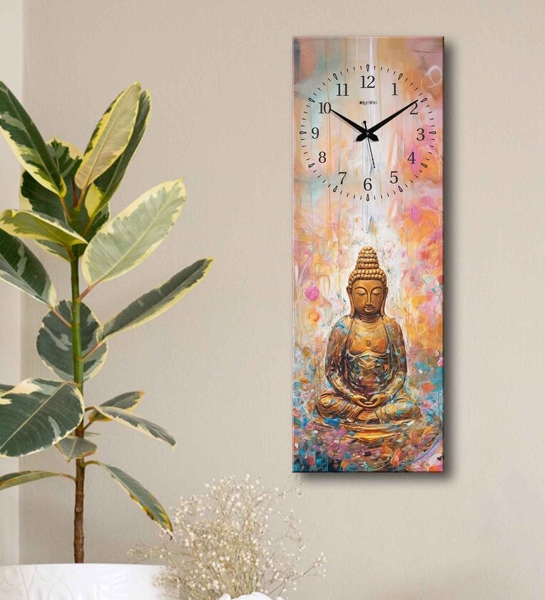 Multicolour Rectangle 24 Inches Wooden Wall Clock (Buddha)