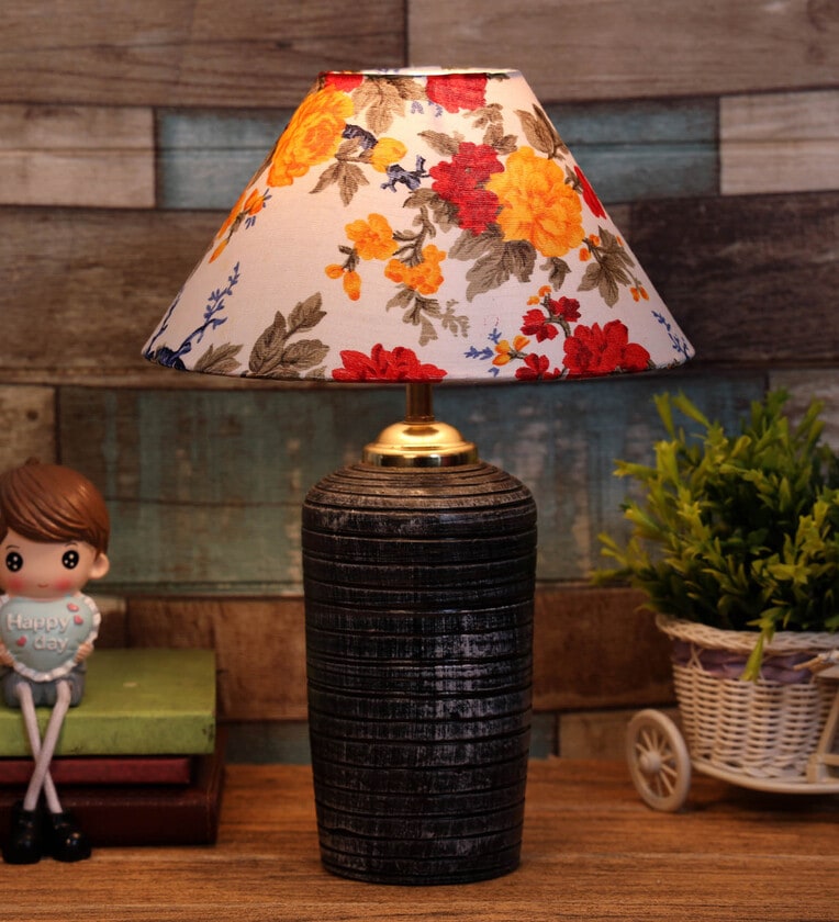 Multicolour Shade Table Lamp With Terracotta Base