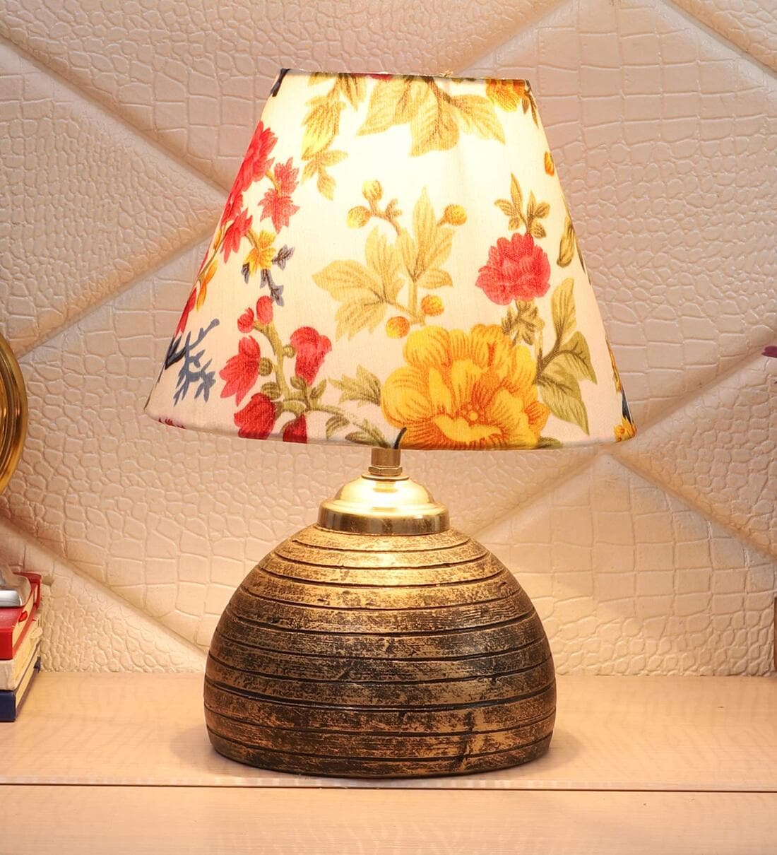 Multicolour Shade Table Lamp With Antique Terracotta Base